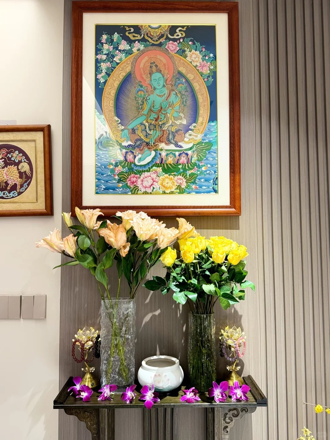 In a quiet living room aglow with soft natural light, a hand-painted Green Tara thangka quietly draws the eye. This moment of calm, where the soulful gaze of a divine figure inspires quiet reflection, illustrates how tibetan thangka for sale options bring ancient spirituality into modern homes. The interplay of sacred iconography with contemporary interior design invites personal transformation and peaceful energy. As more people seek meaningful art that nurtures wellbeing, the best tibetan thangka works offer a timeless connection to Buddhist traditions and meditative mindfulness, enriching any spiritual home decor setting.